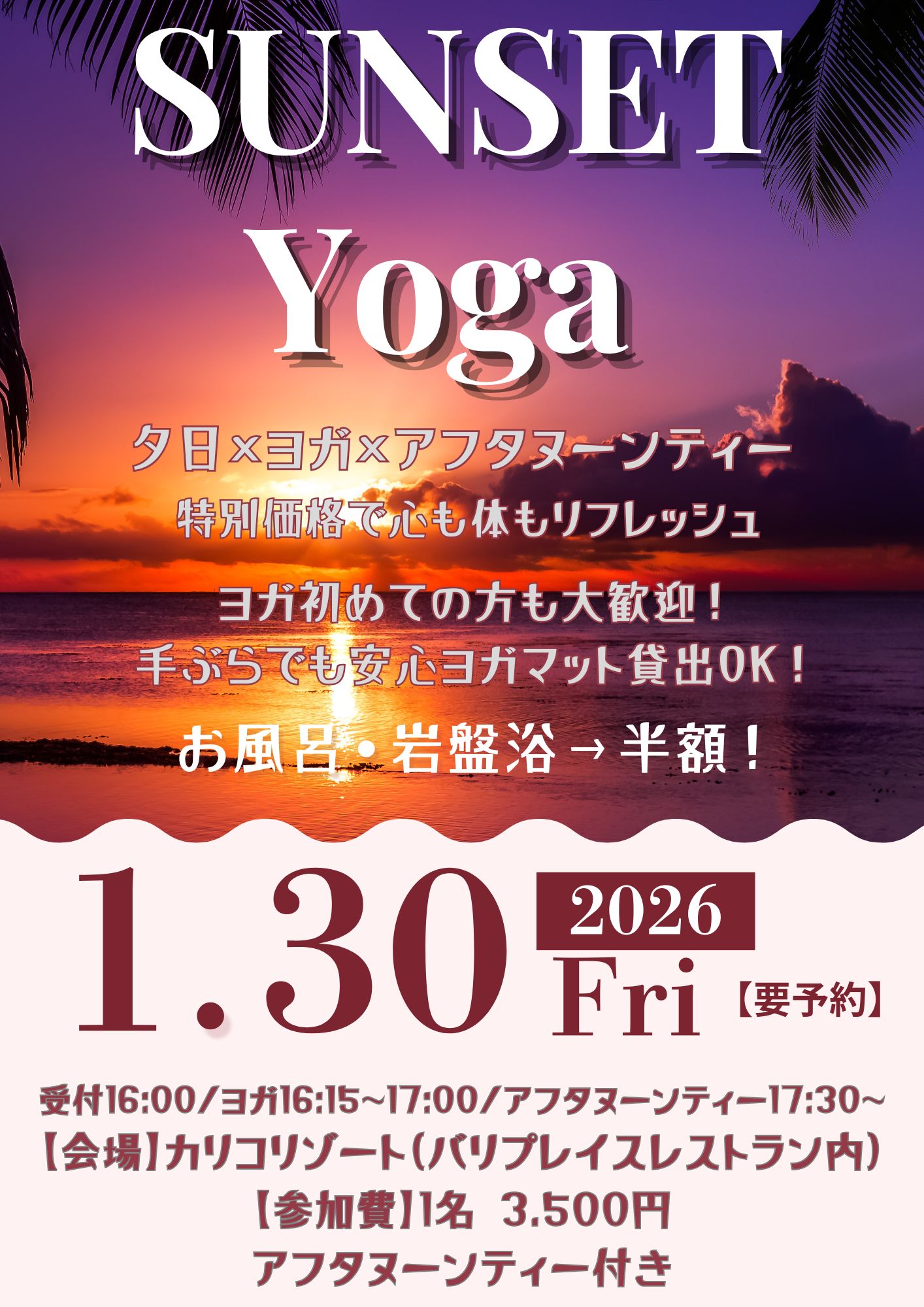 2026年1月30日(金)にバリプレイスで「SUNSET Yoga」を開催いたします。