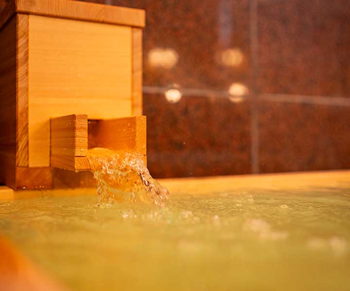 雁子の湯のために作られた大型の檜の浴槽です。ロウリュウサウナ後の檜の浴槽は、気持ち良く体をクールダウンさせてくれます。サウナと水風呂のコンビネーションで心と体をリフレッシュさせてくれることでしょう。