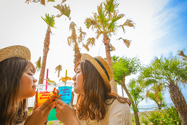 ドリンクを飲みながらプールサイドで過ごすリゾート時間