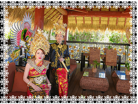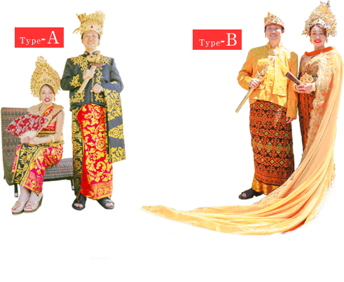 本場バリから取り寄せたバリの結婚衣装です。 2つのタイプ(Type-A、Type-B)からお選びいただけます。 独特のエキゾチックな雰囲気をお楽しみください。