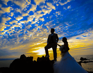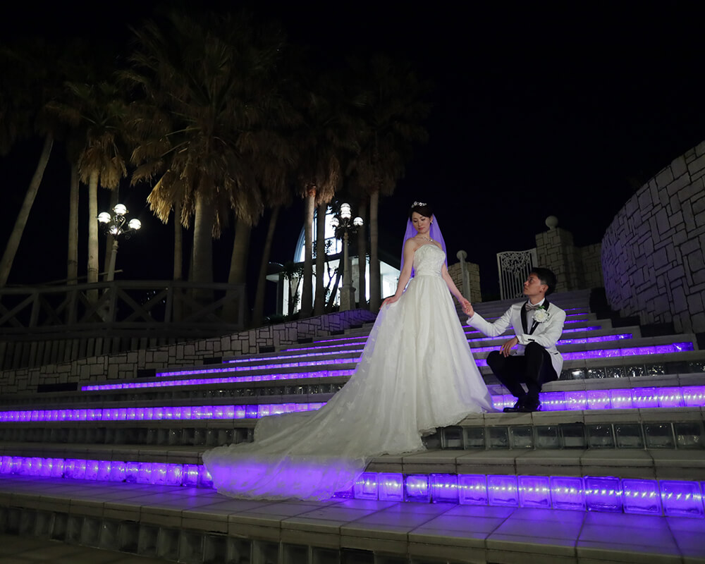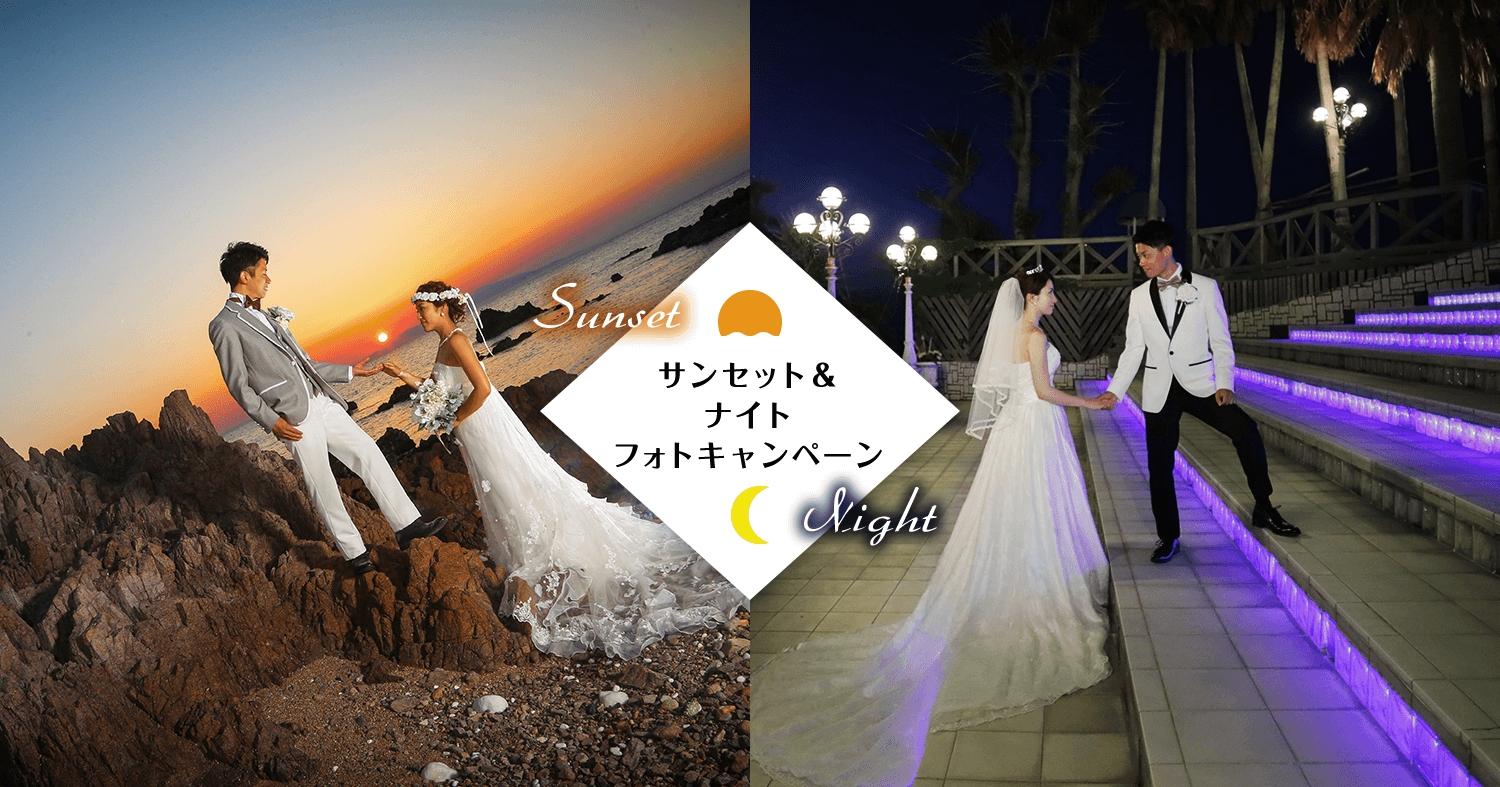 夕日と夜景の2つの景色の中で、お二人を美しくロマンチックに