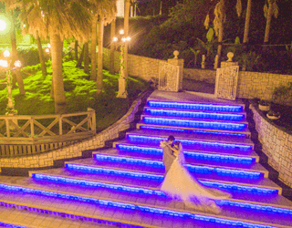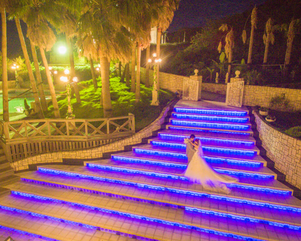 白亜の壁と階段が独特の雰囲気を醸し出す、まるで地中海の町並みのようなロケーション!いつまでも空と海を眺めていたくなる広々とした空間での撮影は表情も自然と柔らかに。 カメラの向きや立ち位置を少し変えるだけで、まったく異なる写真に仕上がるこのロケーションは、カリコリゾートの中でも特に人気のスポットになっています。