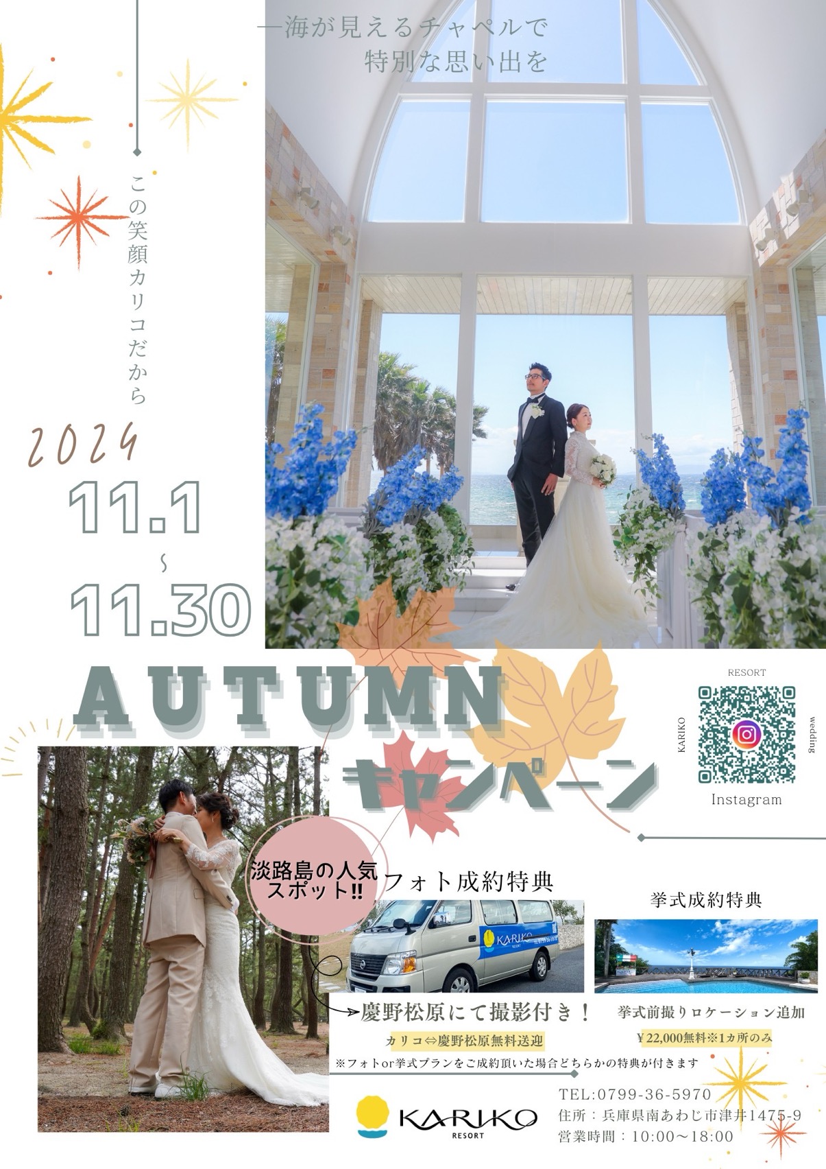 2024年11月1日(金)~11月30日(土)の期間にオータムキャンペーンを開催いたします。