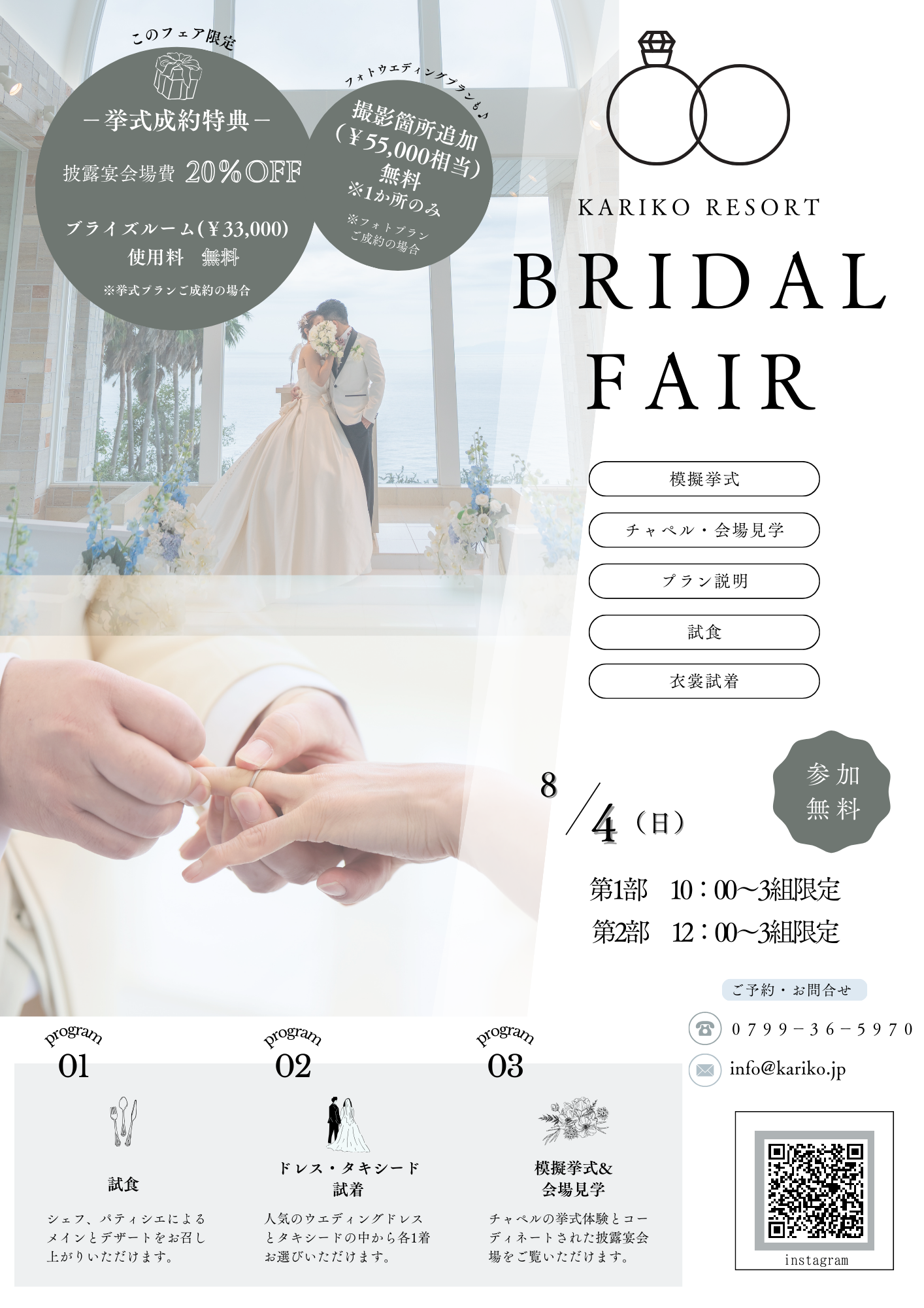 2024年8月4日(日)にカリコリゾートでブライダルフェアを開催いたします!