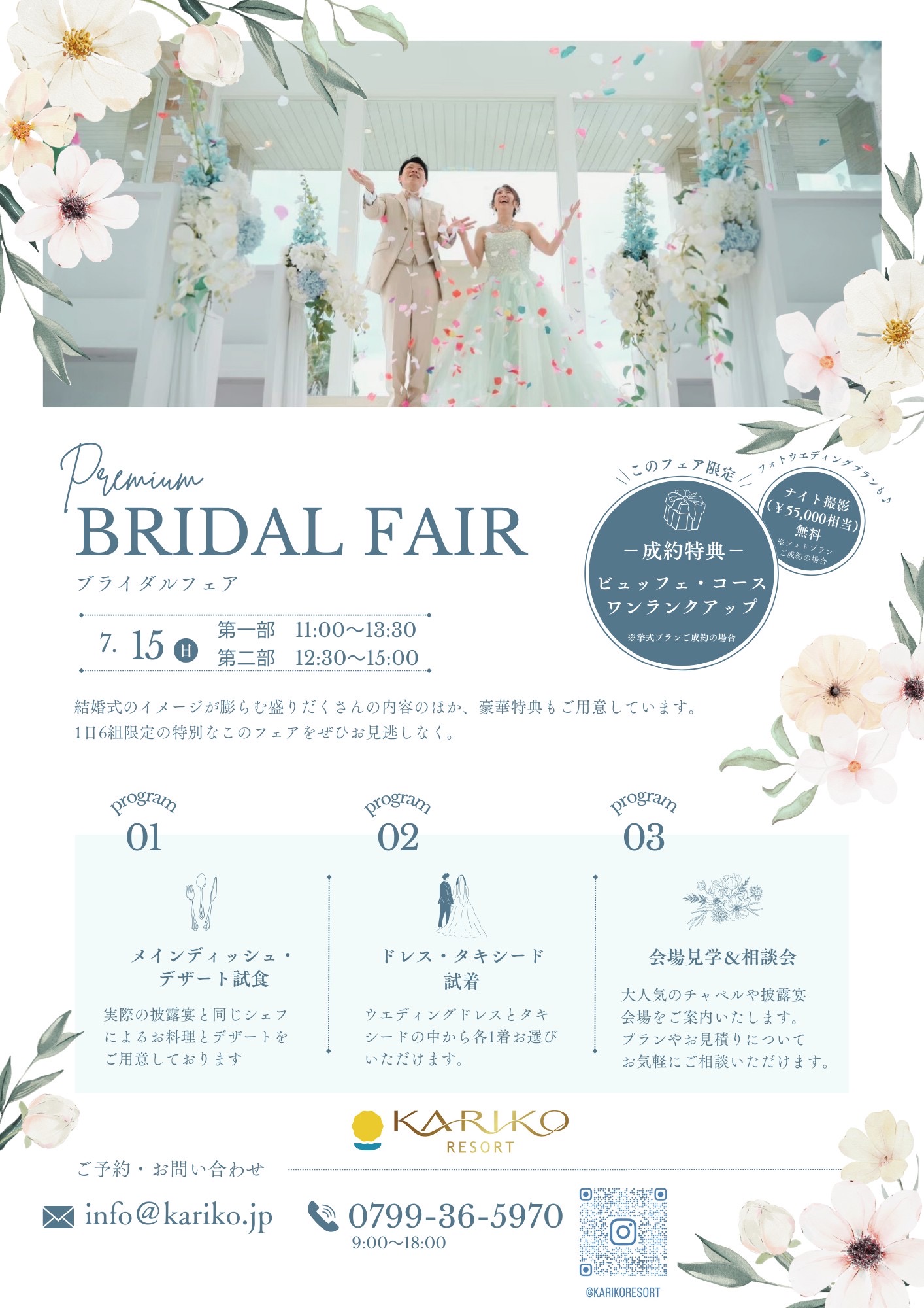2024年7月15日(月・祝)にカリコリゾートでブライダルフェアを開催いたします!