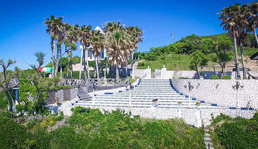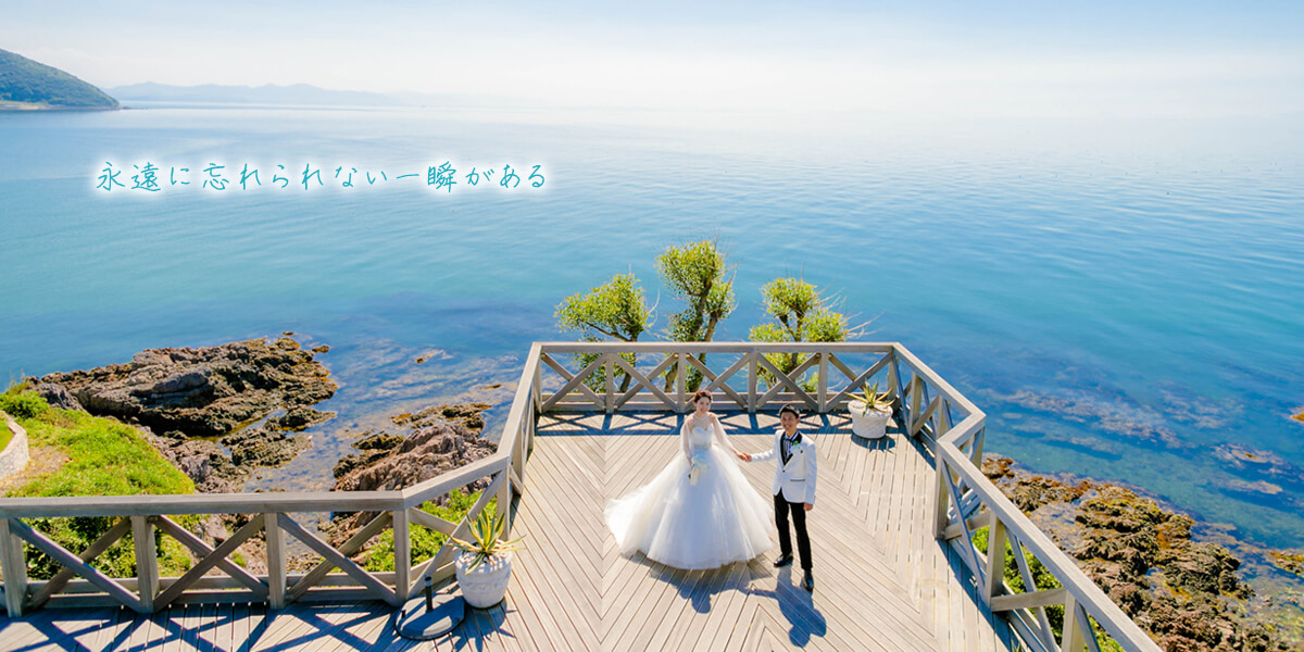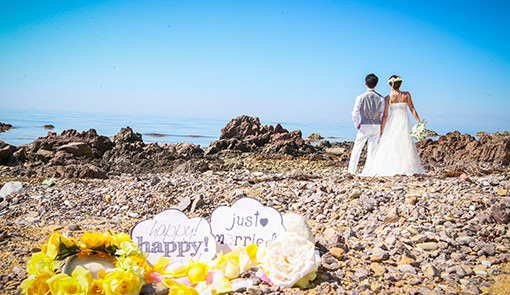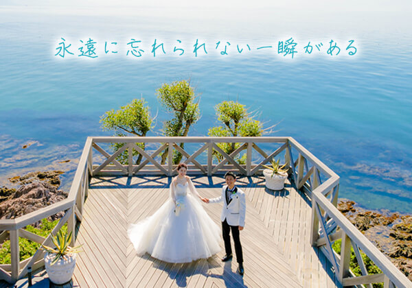 海が見える白いチャペルでの撮影を存分に楽しめるよう、ウエディングオープンカーや、装花などの撮影小道具が無料で存分に楽しめる内容になります。