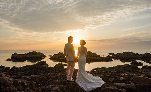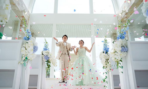 二人にとっての記念日にしたいからチャペルでの撮影は外せない。定番のガーデンやビーチでのフォトも残したい。旅行気分で撮影したいから、外国のような風景も欲しい。