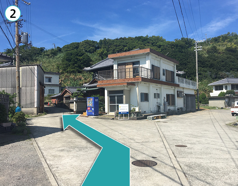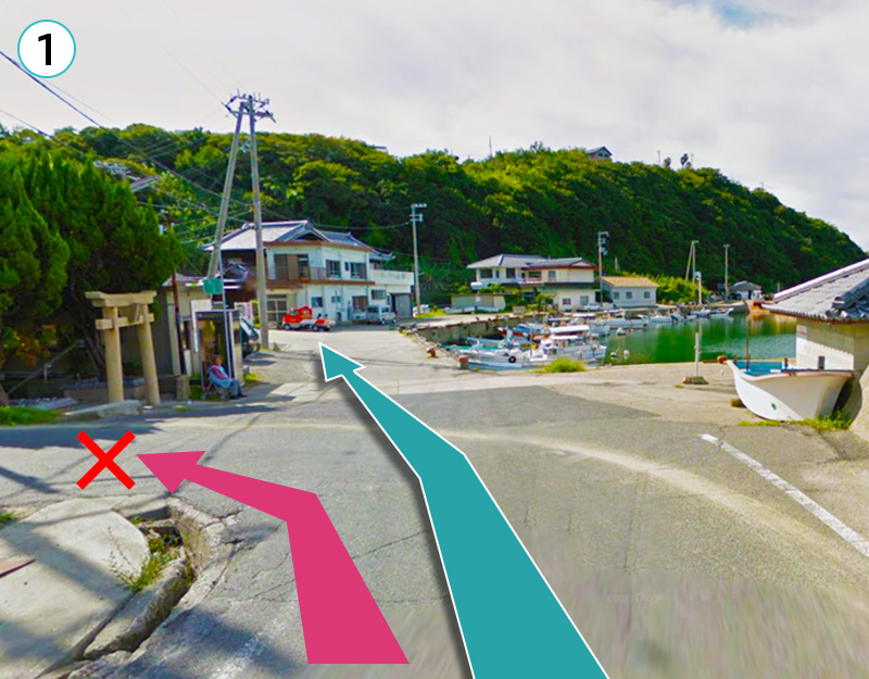 津井港手前。 津井の八大龍王宮を越えて20M先を左折。